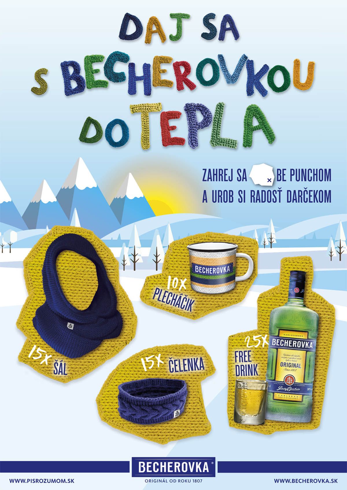 Dárky provázející zimní akci jsme vybrali tak, aby logicky navazovaly na hlavní poselství: Zahřejte se s Becherovkou.